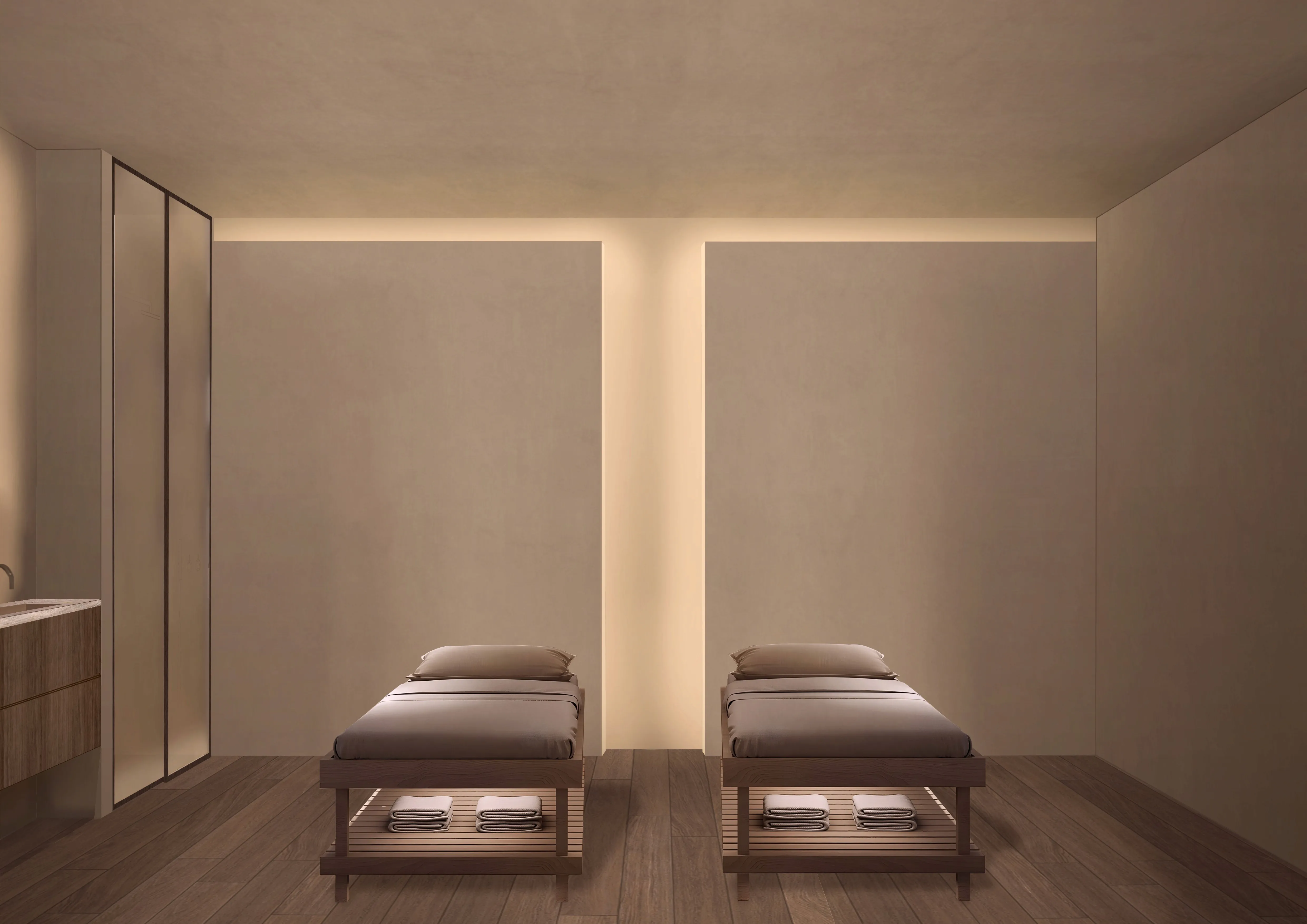 Tucked into the cliffside, ROÉE Spa is a space rooted in earth, ritual, and presence. With natural textures and a palette inspired by the landscape, the spa invites deep calm and sensory grounding. Treatments draw on ancient practices and local botanicals like wild thyme, dittany, and Cretan sage, once used by the Minoans for healing and renewal. From therapeutic massages, to baths, and sauna sessions, every element is designed to restore the body, mind and soul. For those seeking movement, our sea-view fitness space offers light-filled interiors and modern equipment, seamlessly blending into the natural surroundings - a quiet invitation to reconnect through breath and presence.